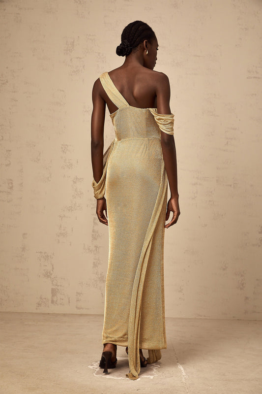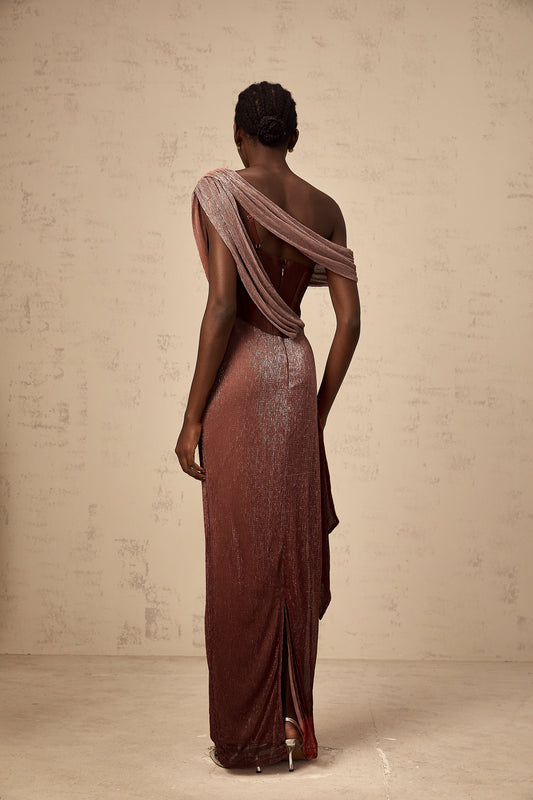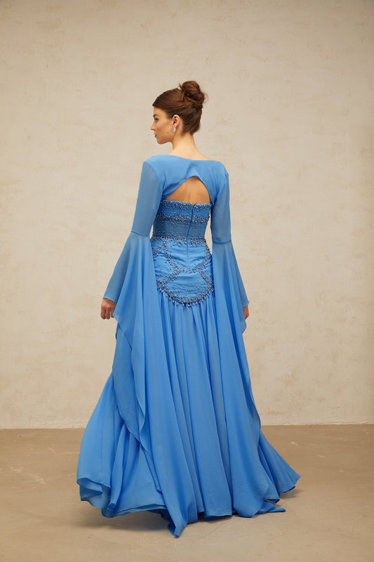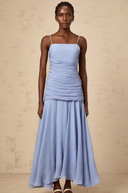 Catherine asymmetric pleated maxi dress in Baby-blue