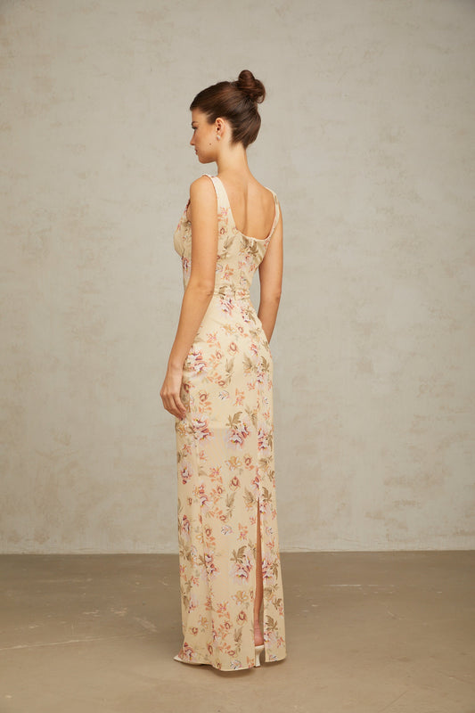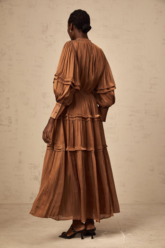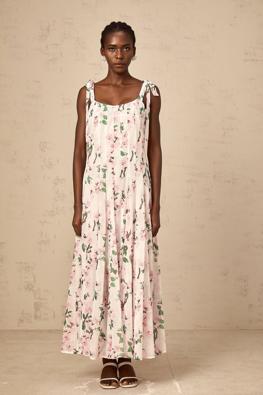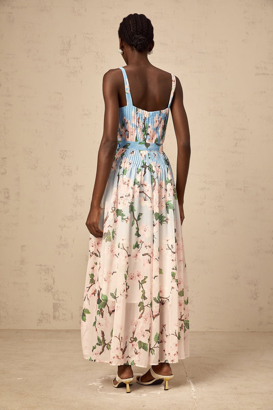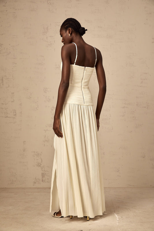 Monique ribbon-design pleated tulle maxi dress in Neutrals