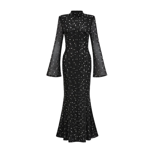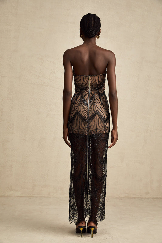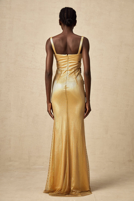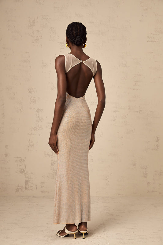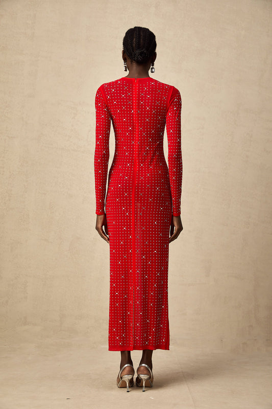 Donatella pink rhinestone-embellished semi-sheer maxi dress