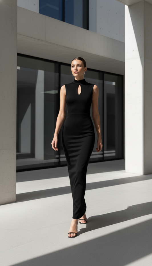 Slim Midi Dress Black Grunge Style Alt Partywear