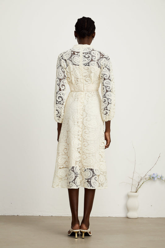 Hilaire white beaded sleeveless cut-out knit midi dress