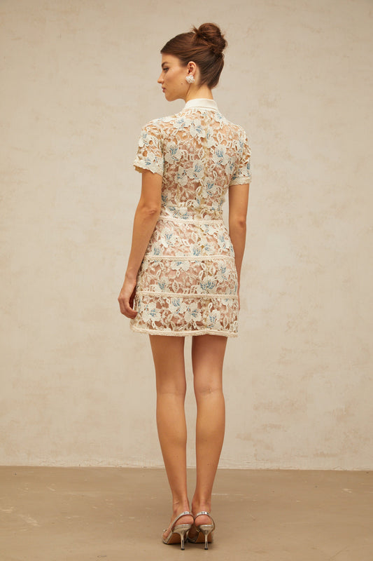Noémie flower embroidery flared mini dress