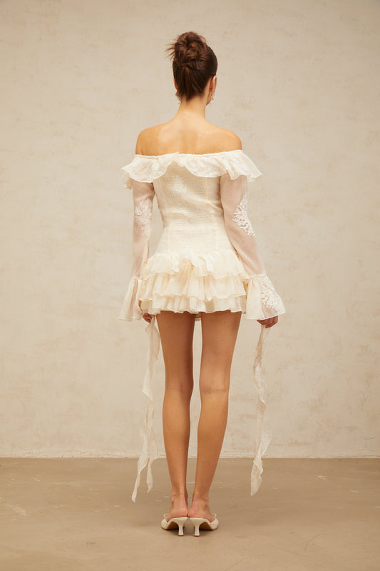 Désirée white off-shoulder embroidered mini dress
