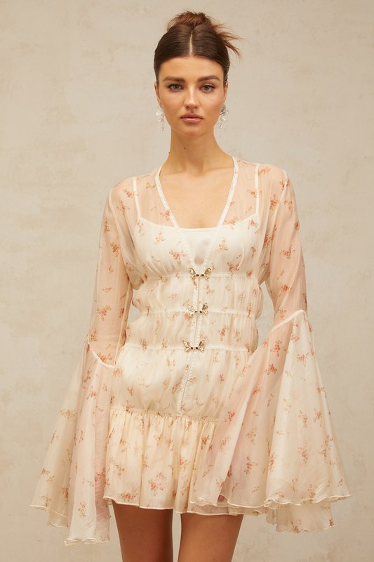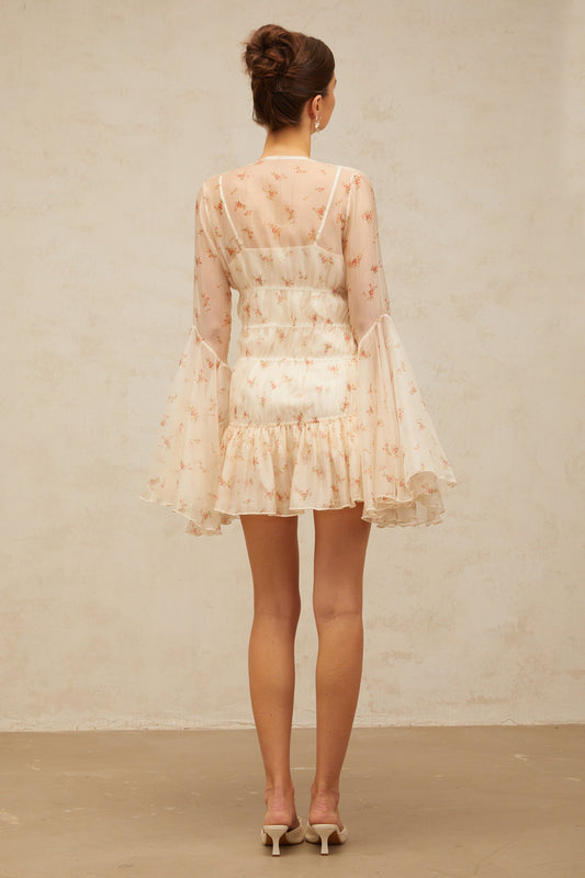 Amélie petal-detail floral-print mini dress in Neutrals