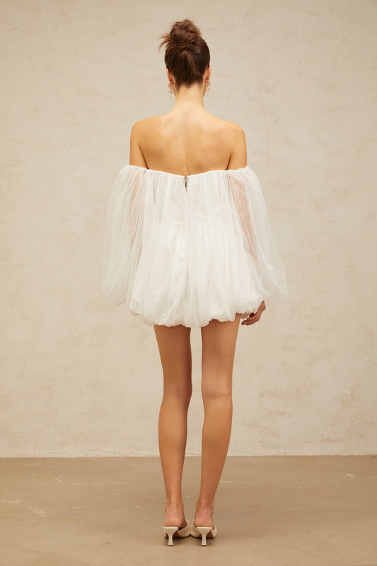 Avril layered bubble tulle mini dress in White
