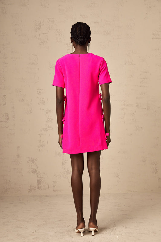 Zelie red 3d-petal semi-sheer tulle mini dress
