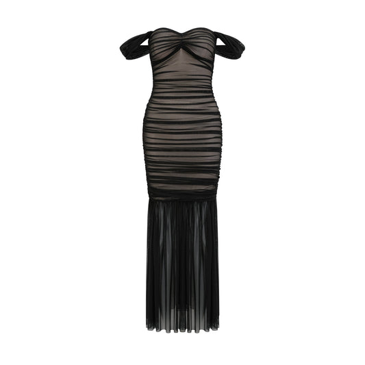 Cyrielle ribbon-detail puff-sleeve maxi dress