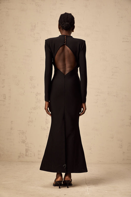 Diane black embellished maxi blazer dress