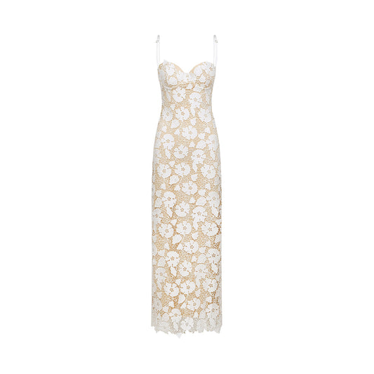 Olivia white floral-appliqué bandage maxi dress