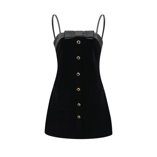 Camille black faux-pearl velvet mini dress