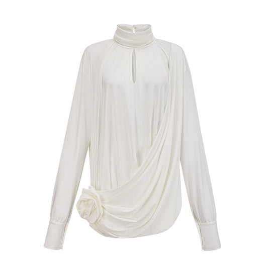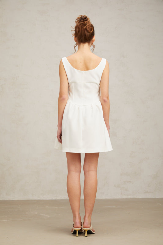 Zelie red 3d-petal semi-sheer tulle mini dress