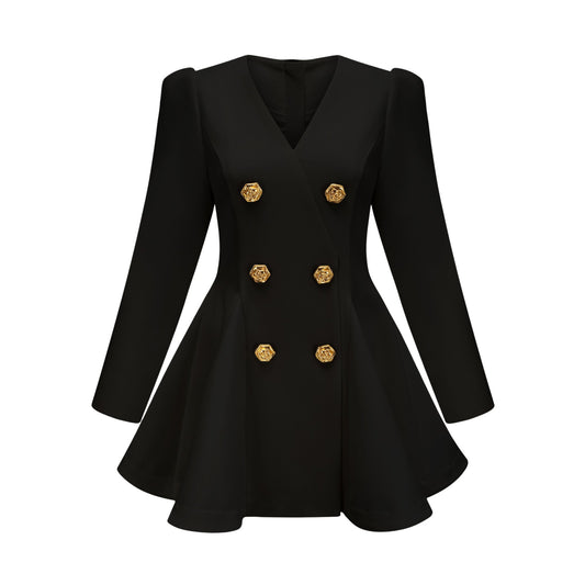 Lucrezia black polka-dot print velvet panelled ruffled mini dress