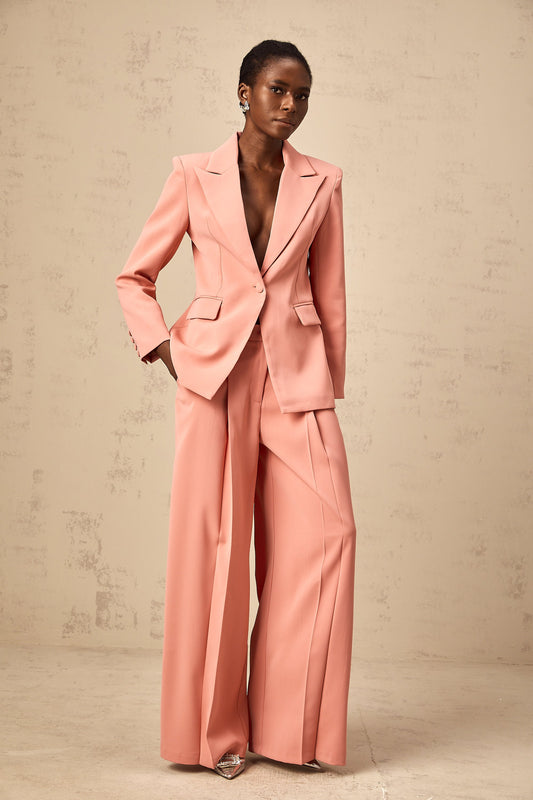 Zoé pink embroidery cut-out blazer & trousers matching set