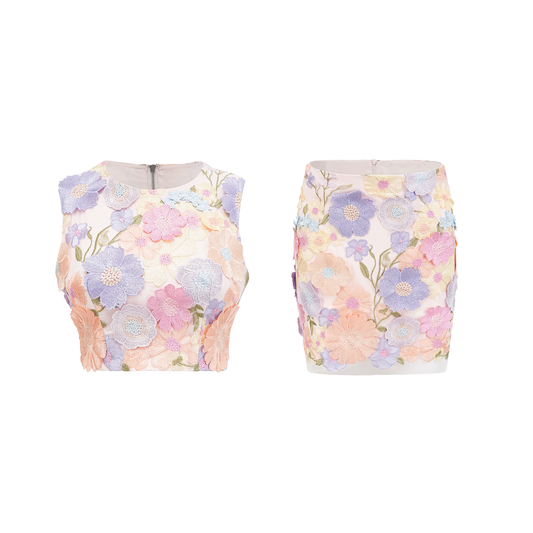 Malika petal embroidered top & skirt matching set