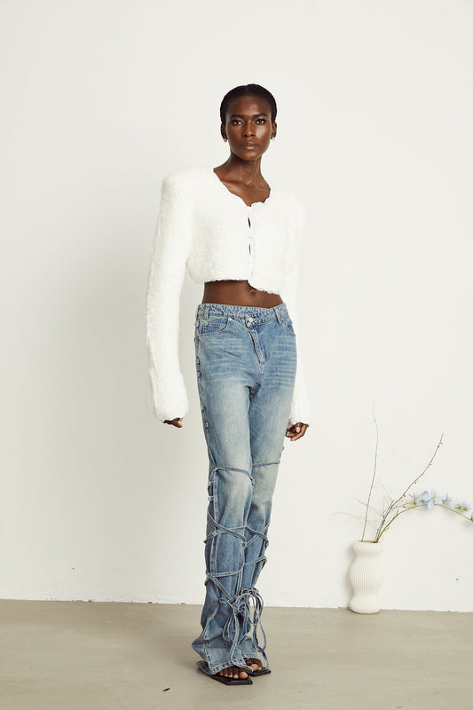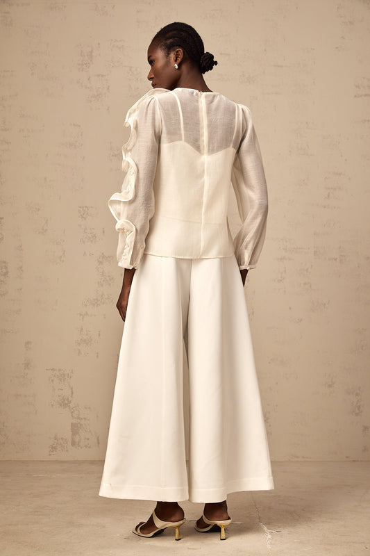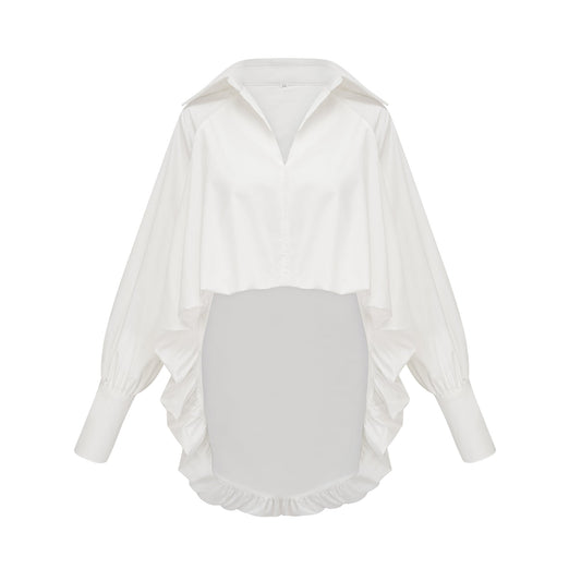 Andrea asymmetric tulle blouse & skirt matching set in Black