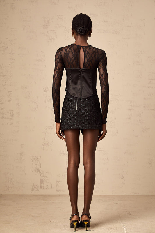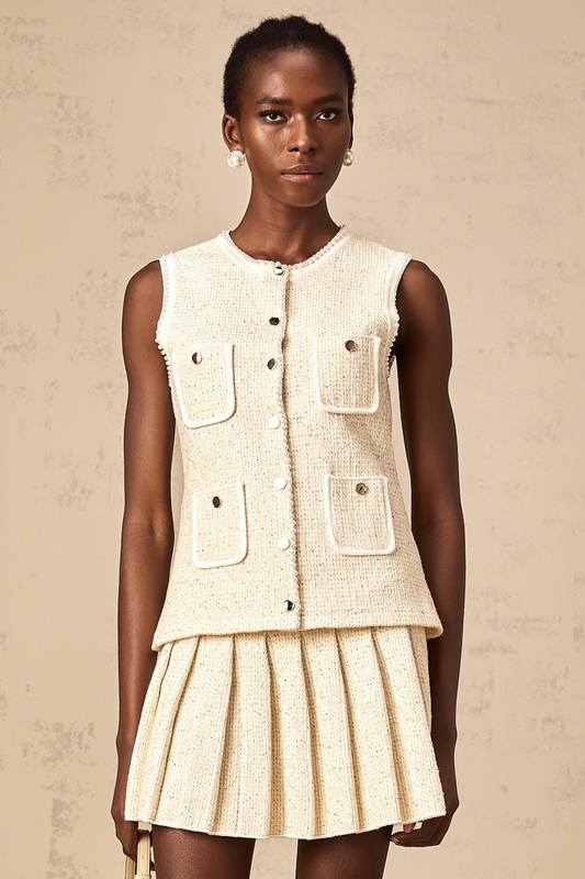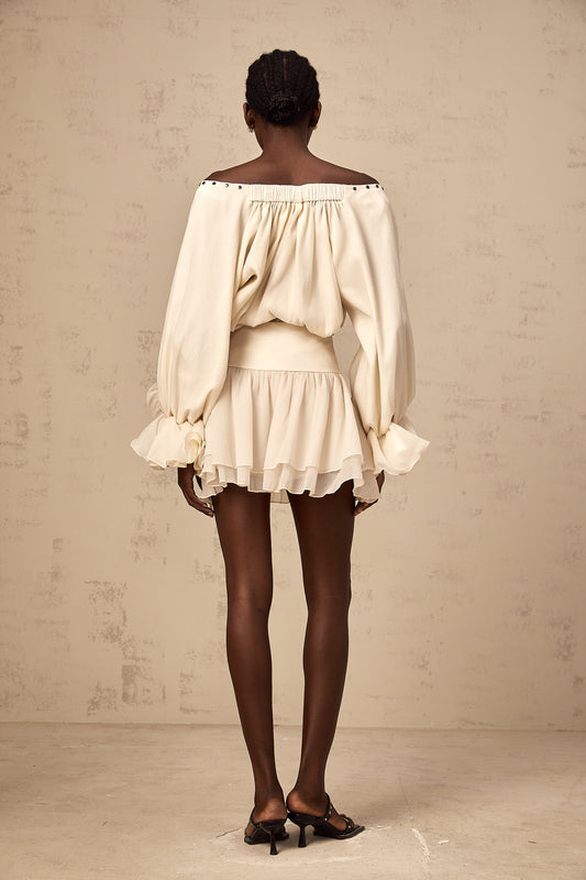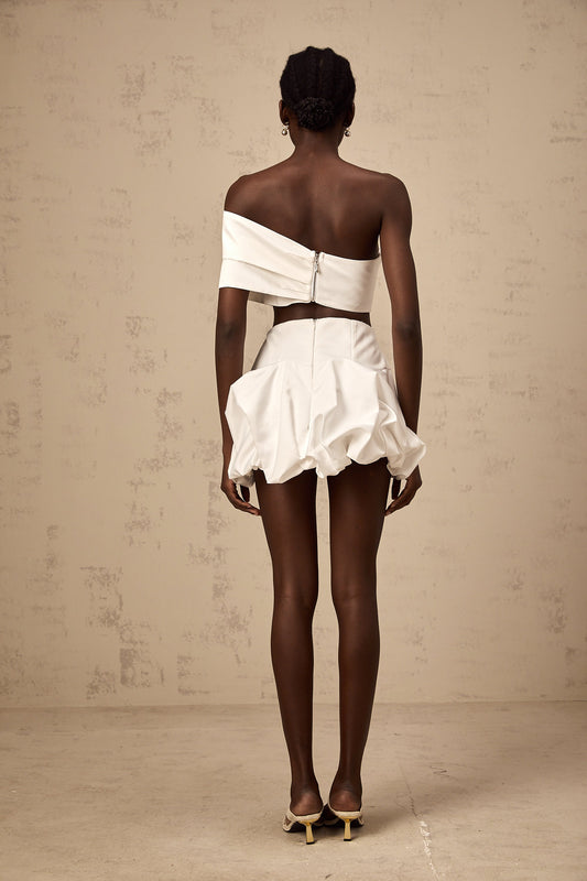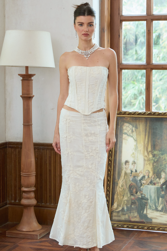 Zoéline ivory patterned-jacquard top & skirt matching set