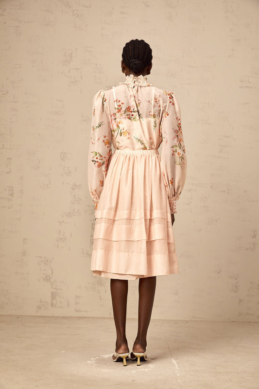 Zelda haze-blue bowknot ruffled blouse & skirt matching set