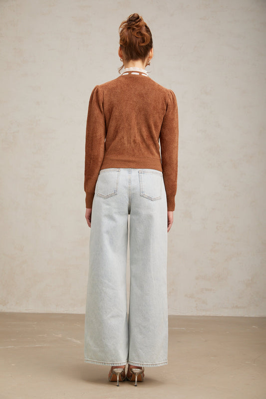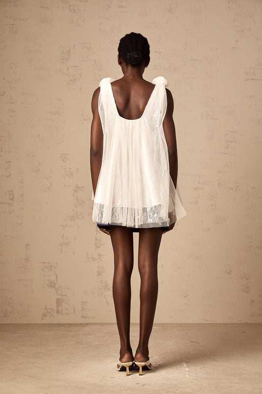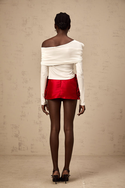 Coralie off-white faux-fur fine-knit top & skirt matching set