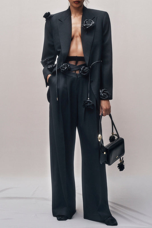 Suzanne black pleated jacket & trousers matching set