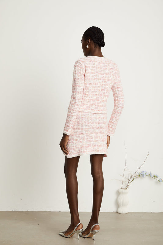 Anaïs pink ribbed-knit cardigan & skirt matching set