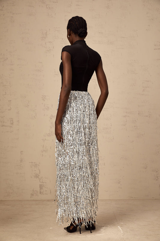 Sidonie silver sequined fringed mini skirt