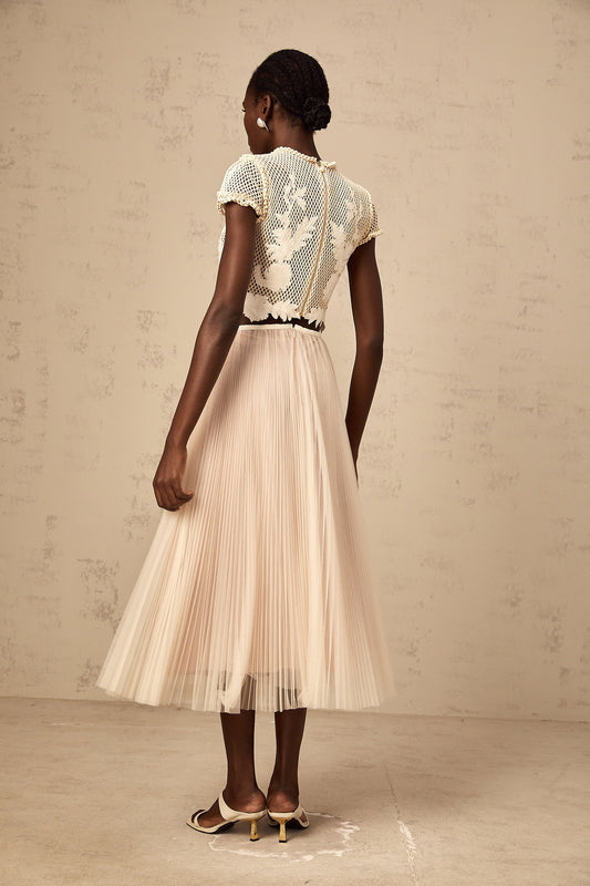 Coralie neutrals 3D-petal top & skirt matching set