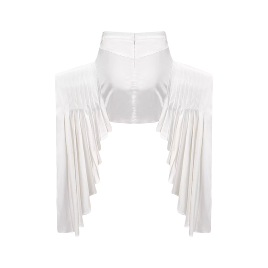 Zelda haze-blue bowknot ruffled blouse & skirt matching set