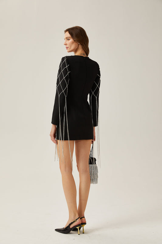 Josie black crystal-embellished bow mini dress