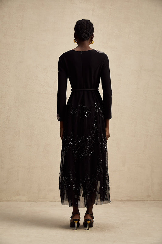 Carole black tulle-panel studded midi dress