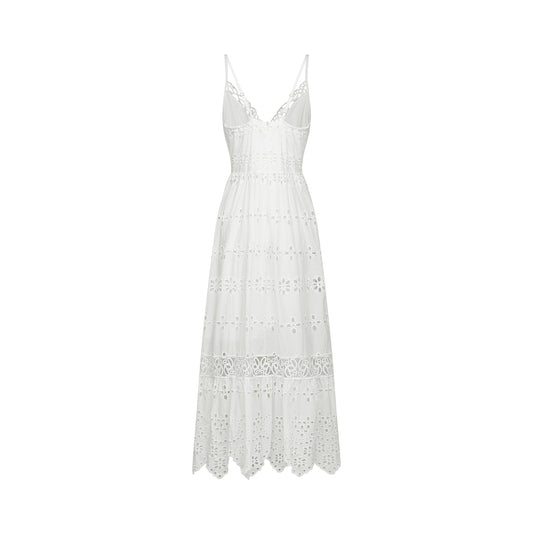 Coquette V-neck embroidered maxi dress