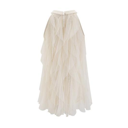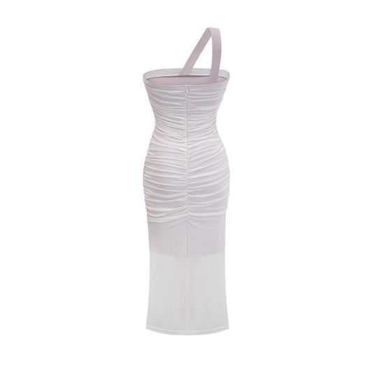 Pádraigín white mesh gathered midi dress