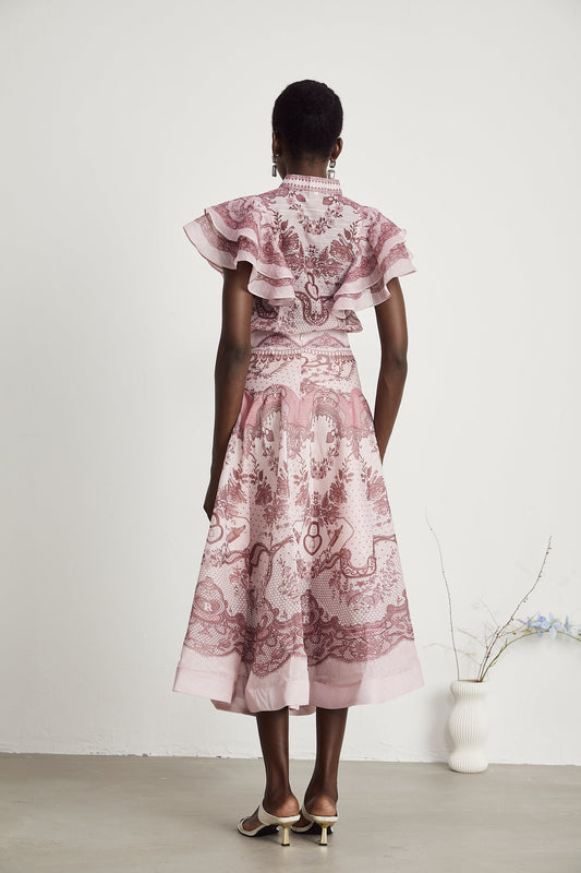 Anaïs flounce-trim pattern-print top & skirt matching set