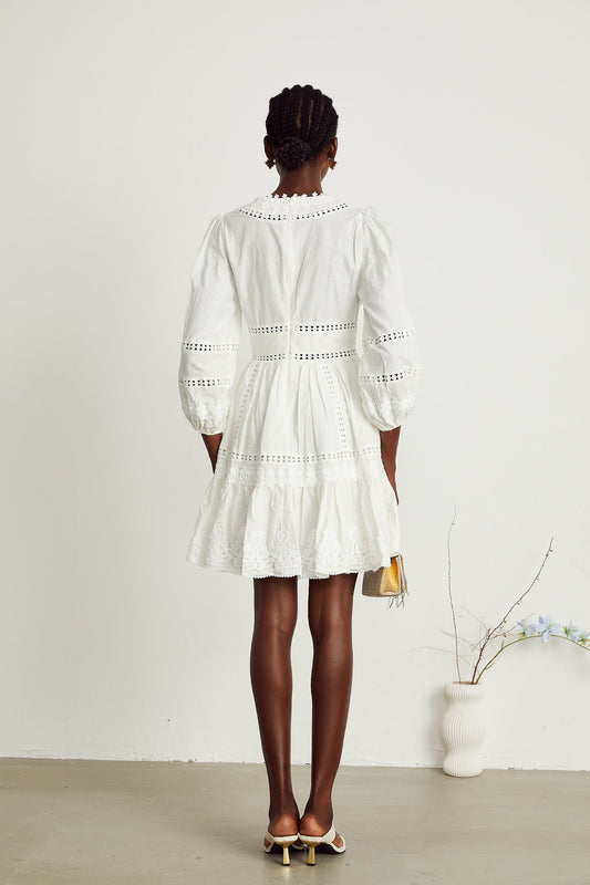Sadie white guipure lace-trimmed mini dress (US Only)