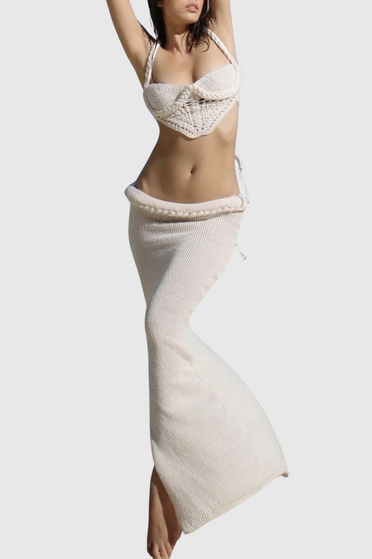 Chaylee Crochet Rope Corset Two Piece Set - Beige