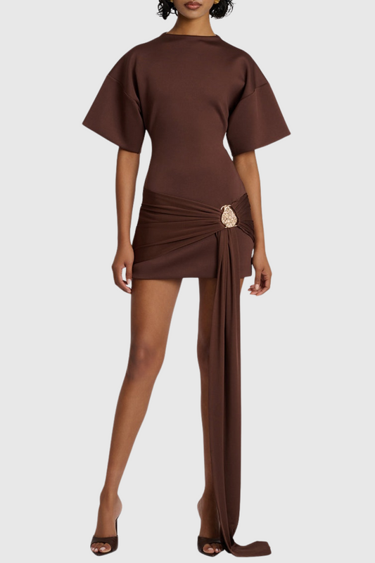 Kadwyn Ruched Asymmetric Faux Leather Mini Dress - Brown