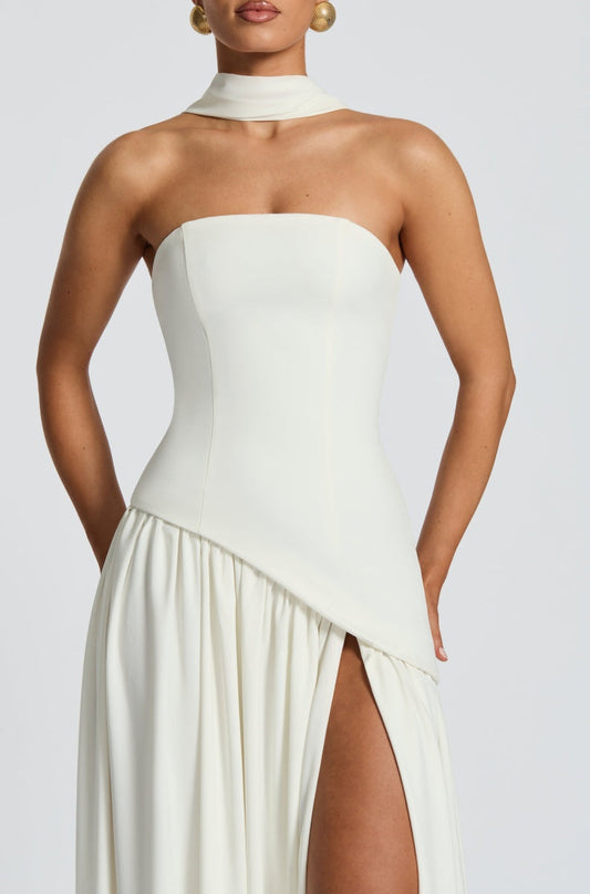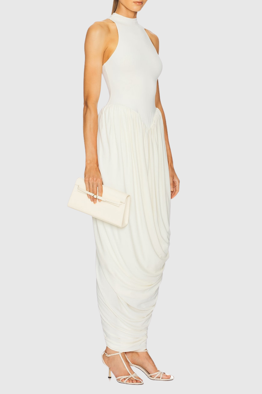 Jago Asymmetric Cape Ruched Midi Dress - White