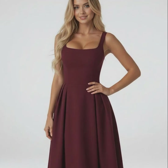 Melanie Square Neck A-Line Midi Dress – Burgundy