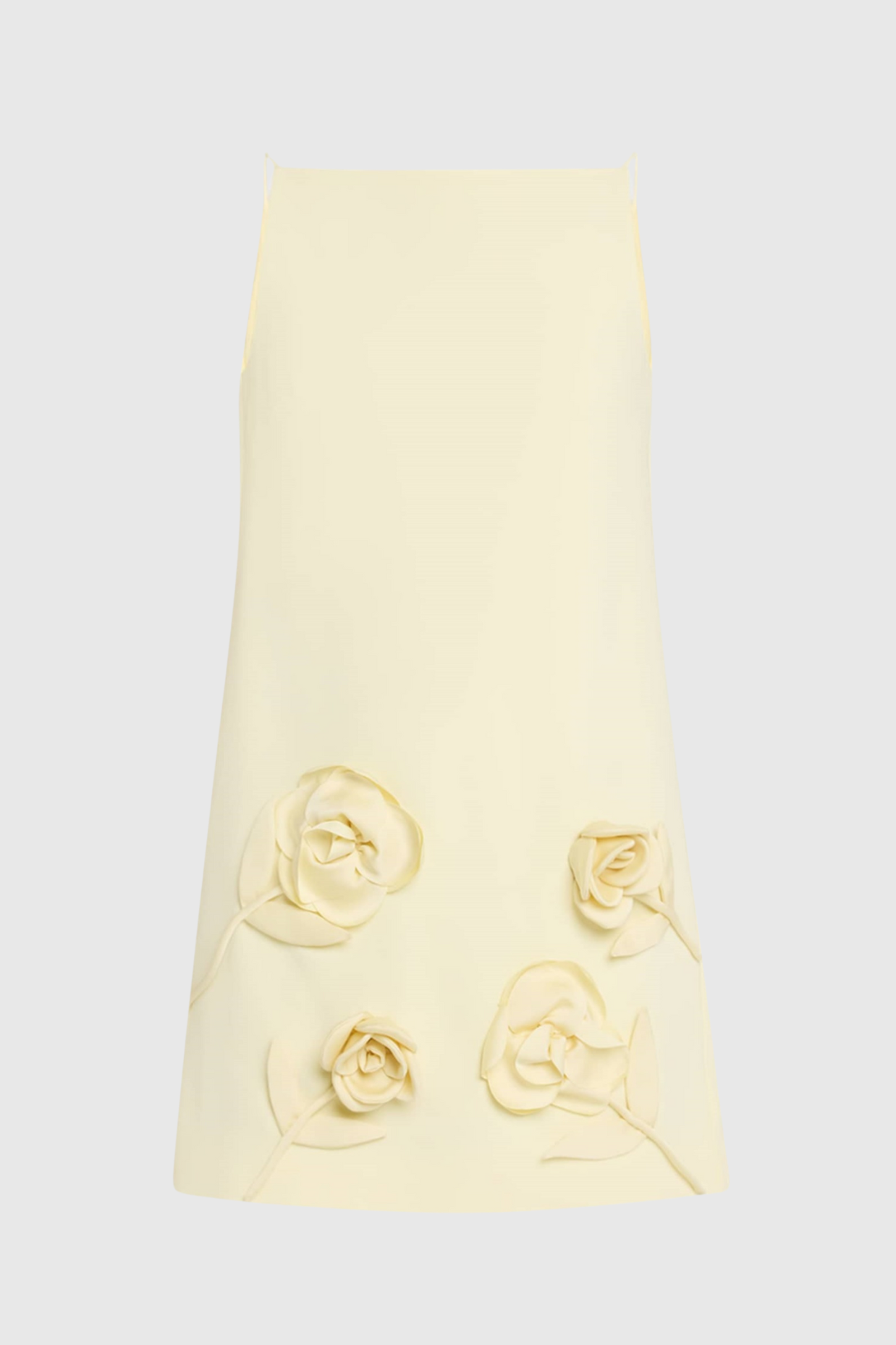 Elevate your wardrobe with the Aarnay Floral Appliqué Mini Dress. This elegant dress boasts intricate, hand-sewn floral appliqués, adding a touch of luxury to your look. Its mini length and figure-flattering silhouette make it perfect for any special occasion. Experience the sophistication and exclusivity of this exquisite dress.