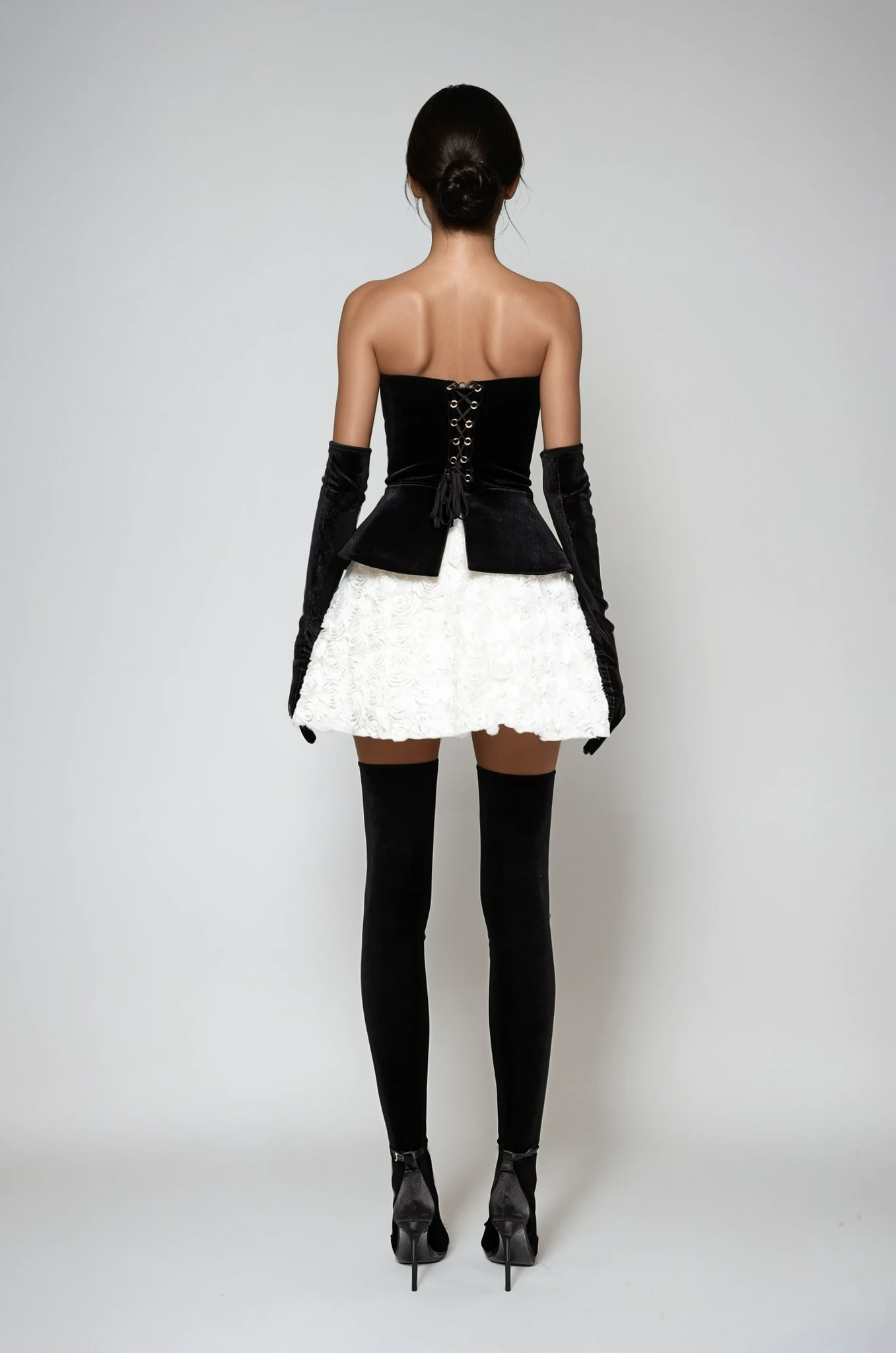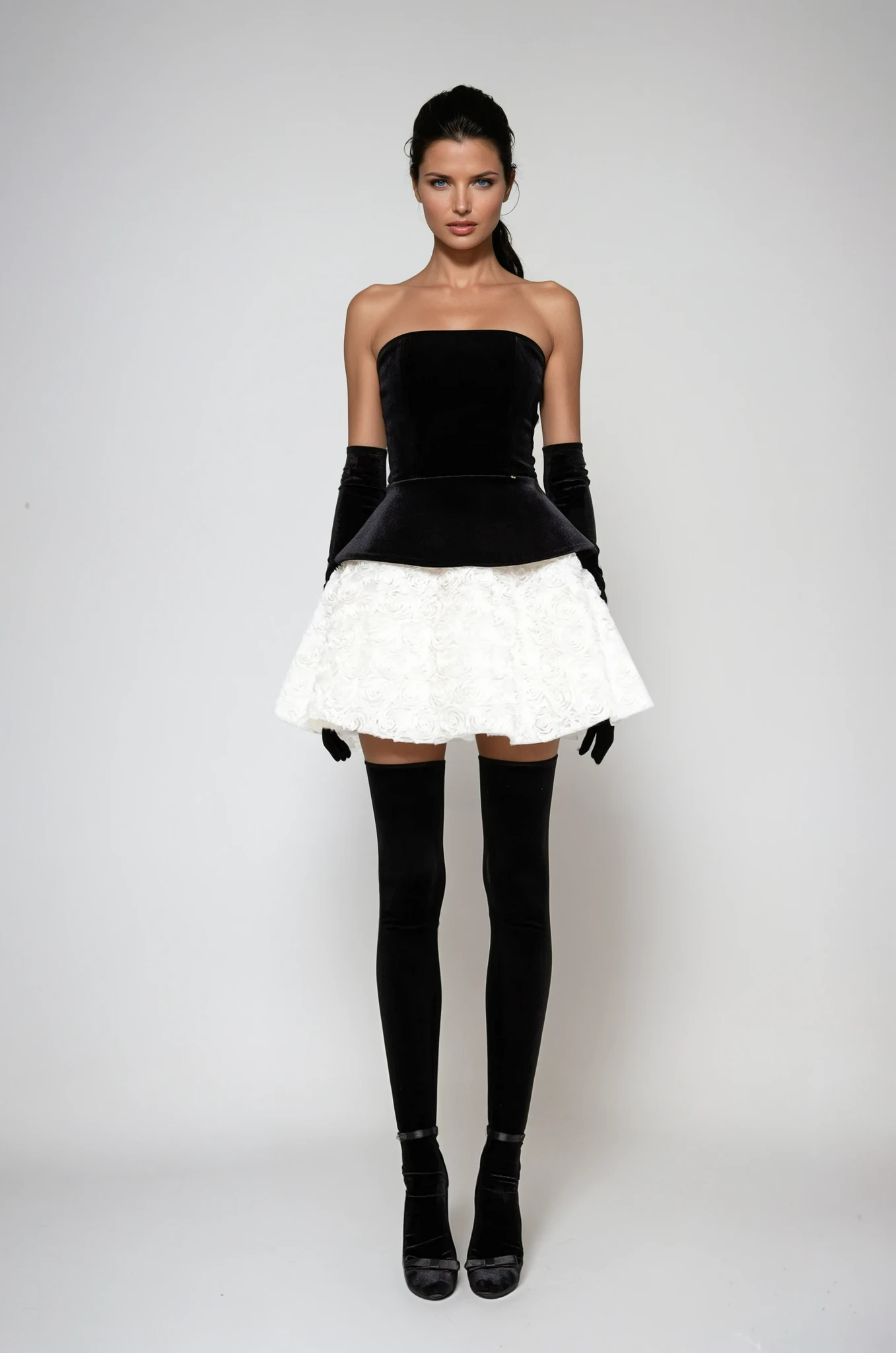 Abda Strapless Floral Layerd Velvet Mini Dress