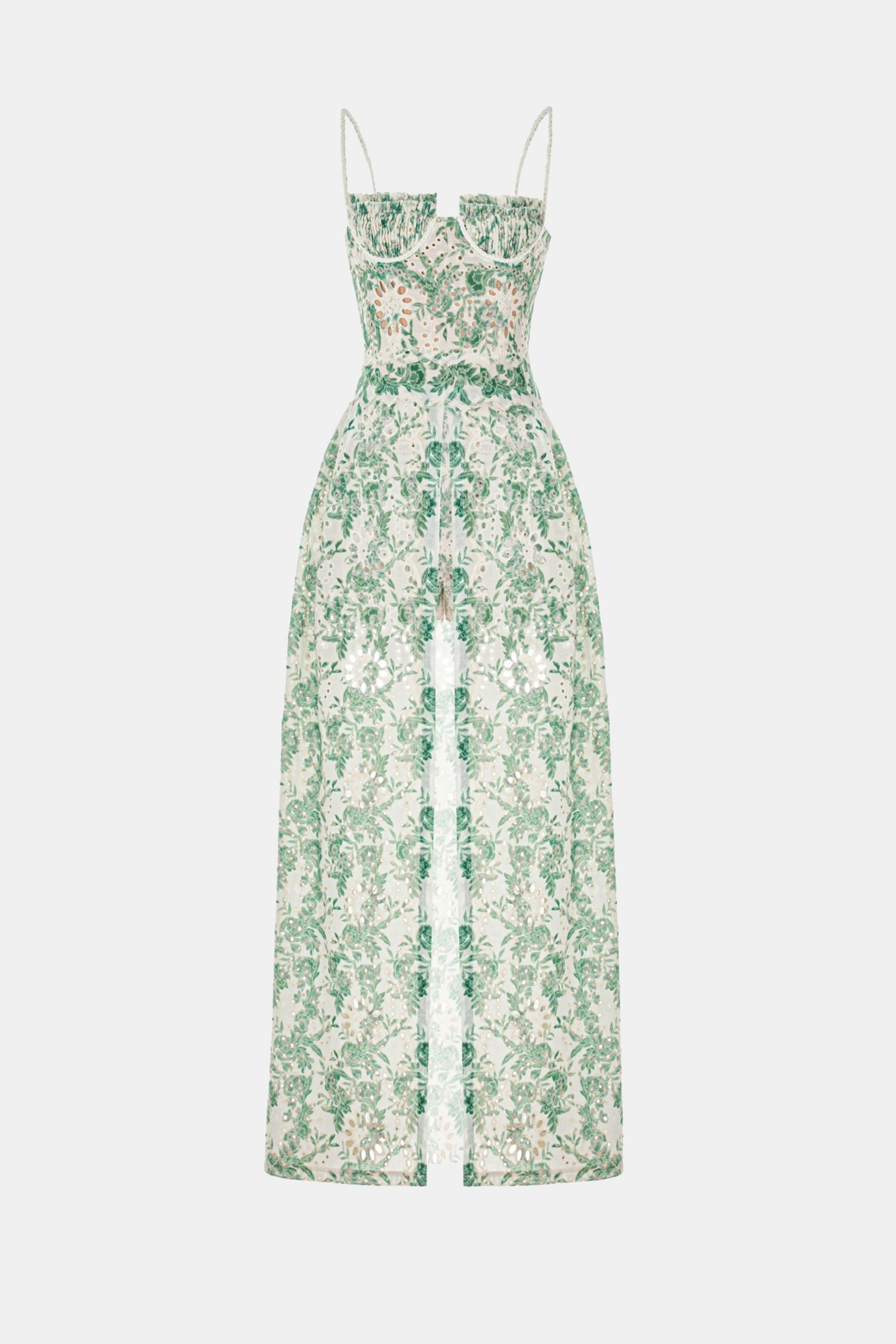 Abetzi Floral Embroidered Shorts & Maxi Dress Set - Green