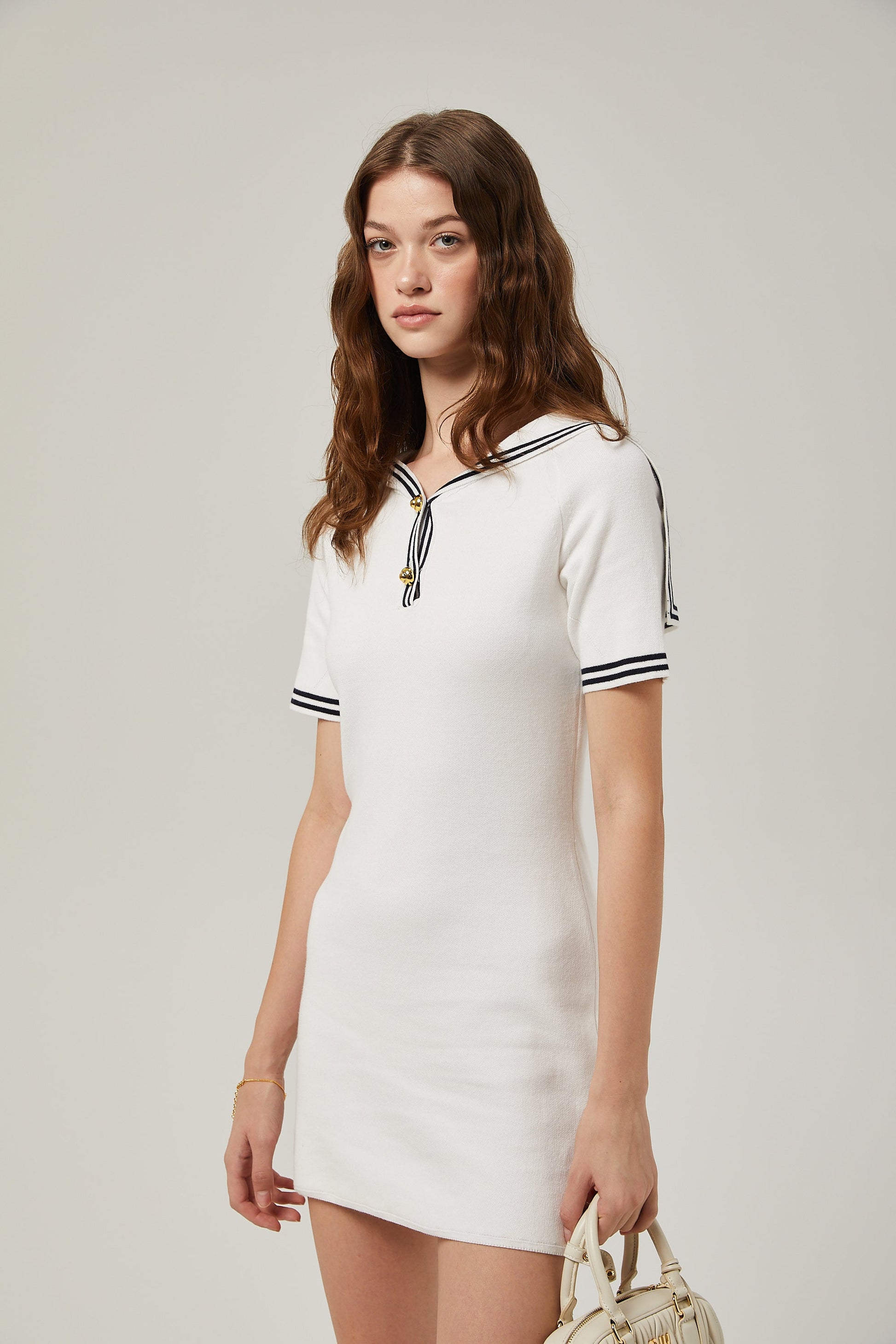 Aiza sailor collar cotton short-sleeve mini dress