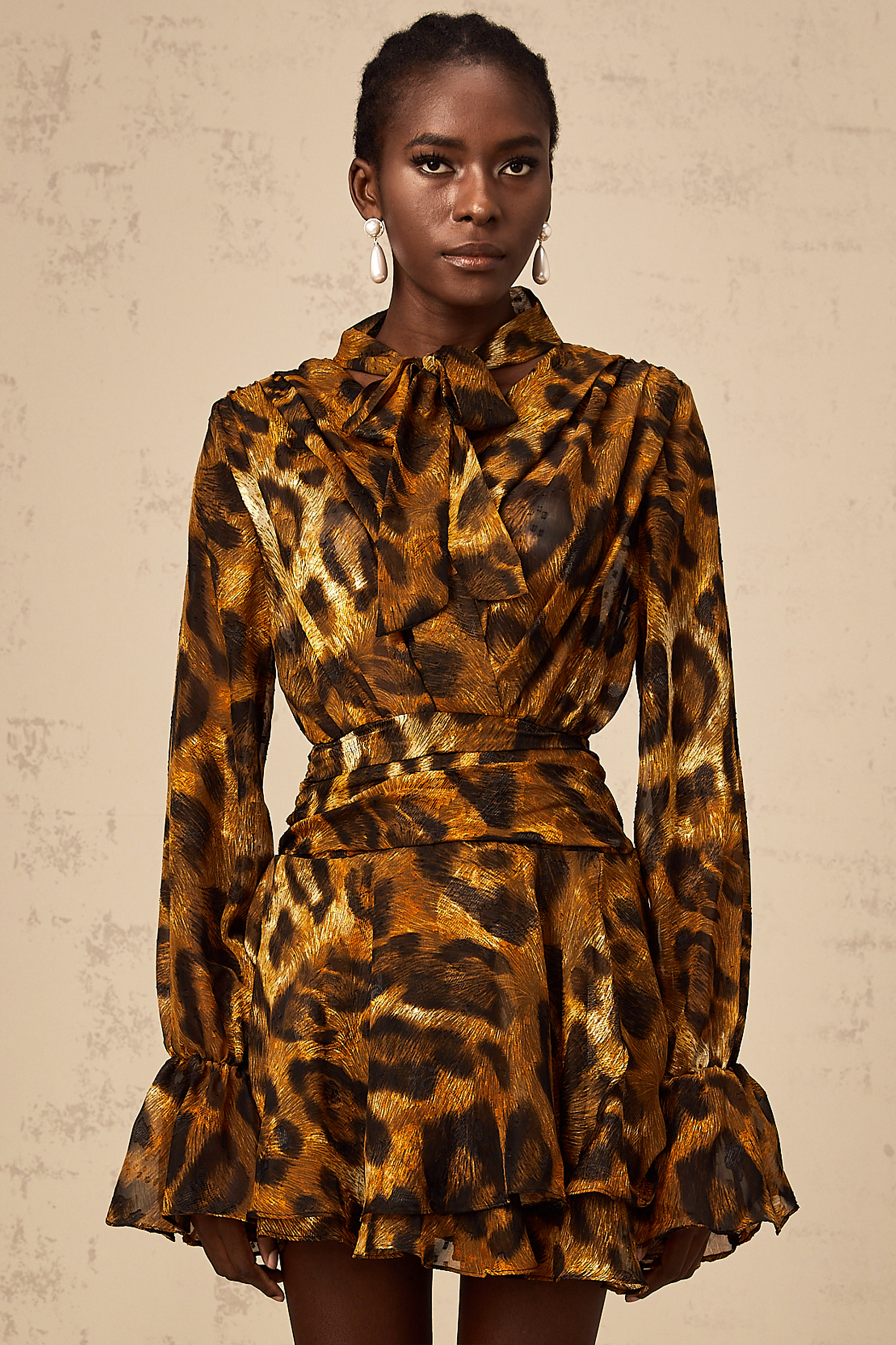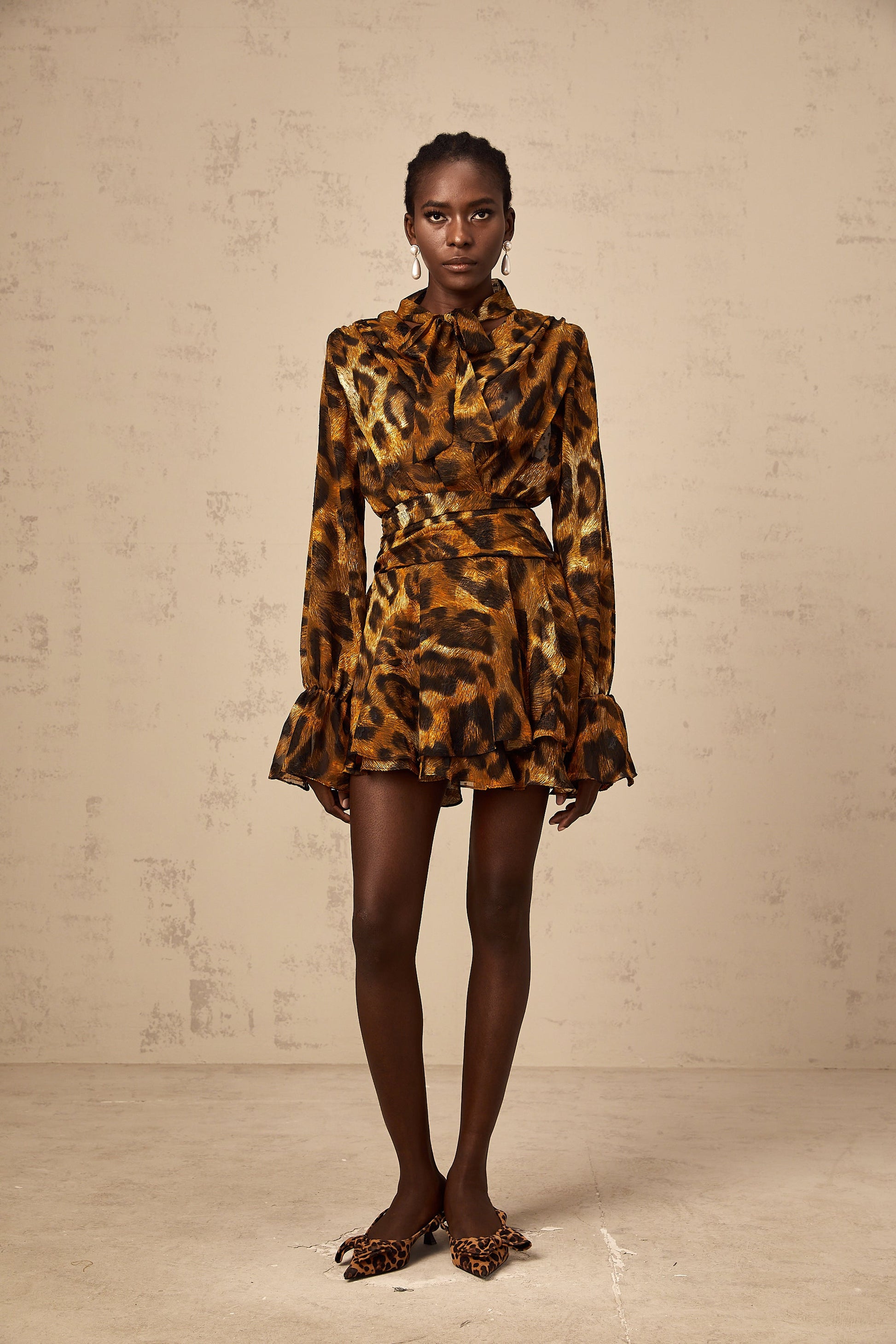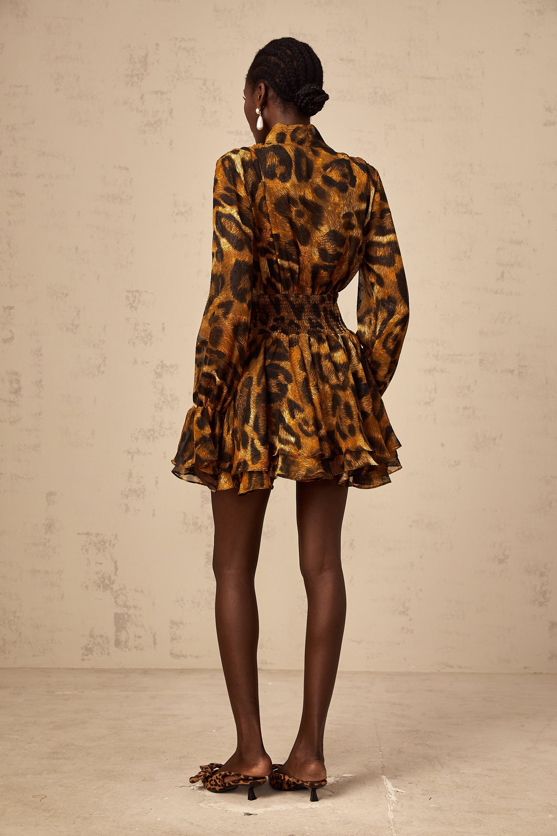 Alizée brown leopard-print flounce mini dress