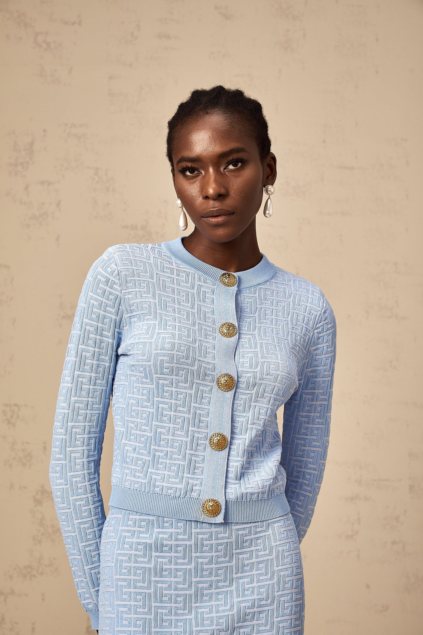 Anais knit patterned-jacquard cardigan & skirt matching set