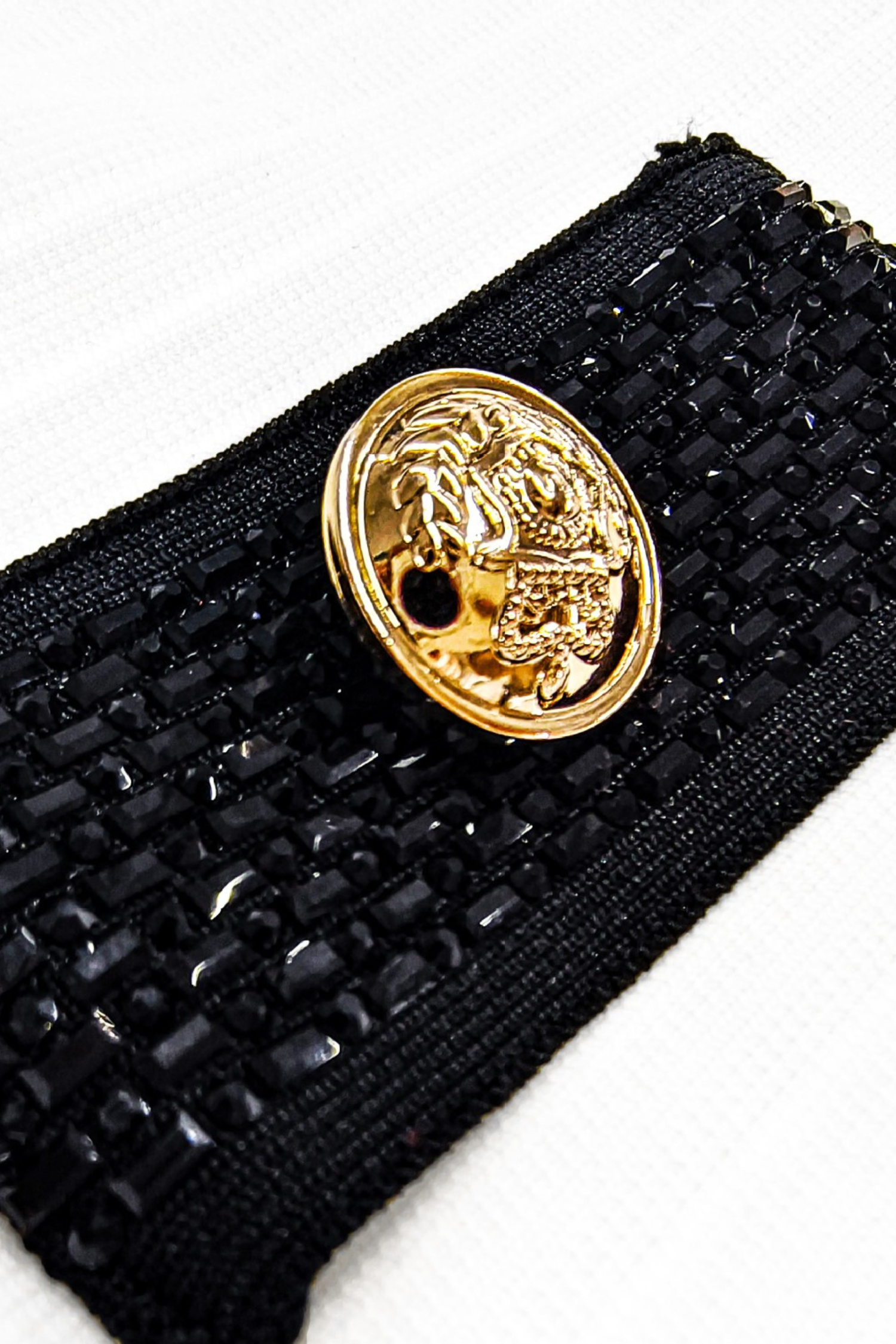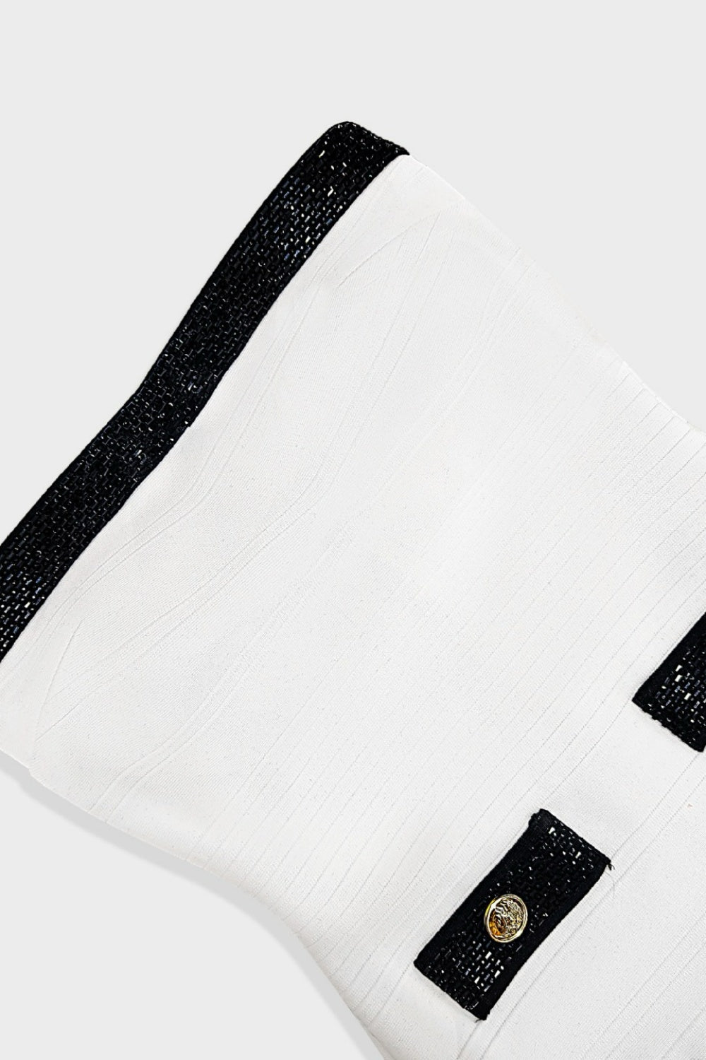 Indulge in luxury with the Anklyn Ribbed Strapless Midi Bandage Dress. This exquisite dress features a ribbed design and a strapless silhouette for a chic and timeless look. Crafted with high-quality bandage material, it hugs your curves in all the right places, making you feel confident and sophisticated. Perfect for any special occasion, this dress is a must-have for your wardrobe.