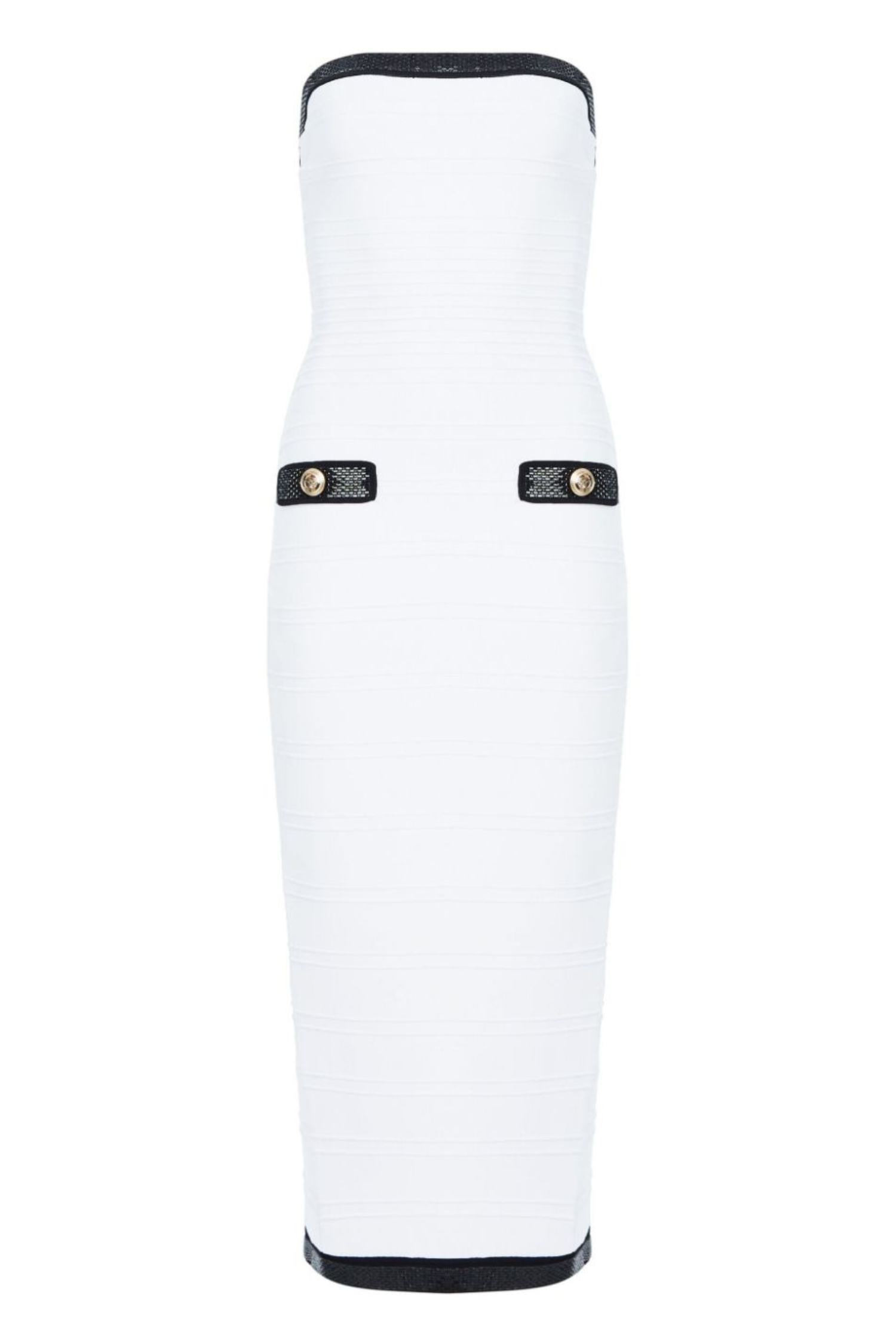 Anklyn Ribbed Strapless Midi Bandage Dress
