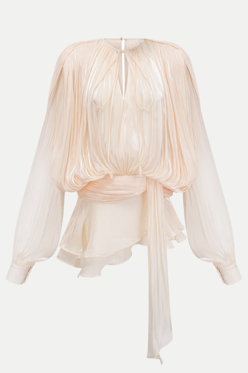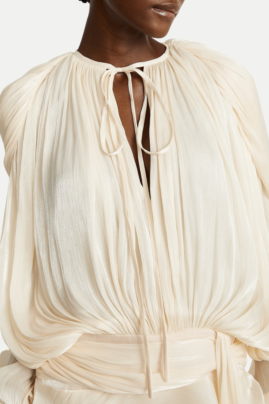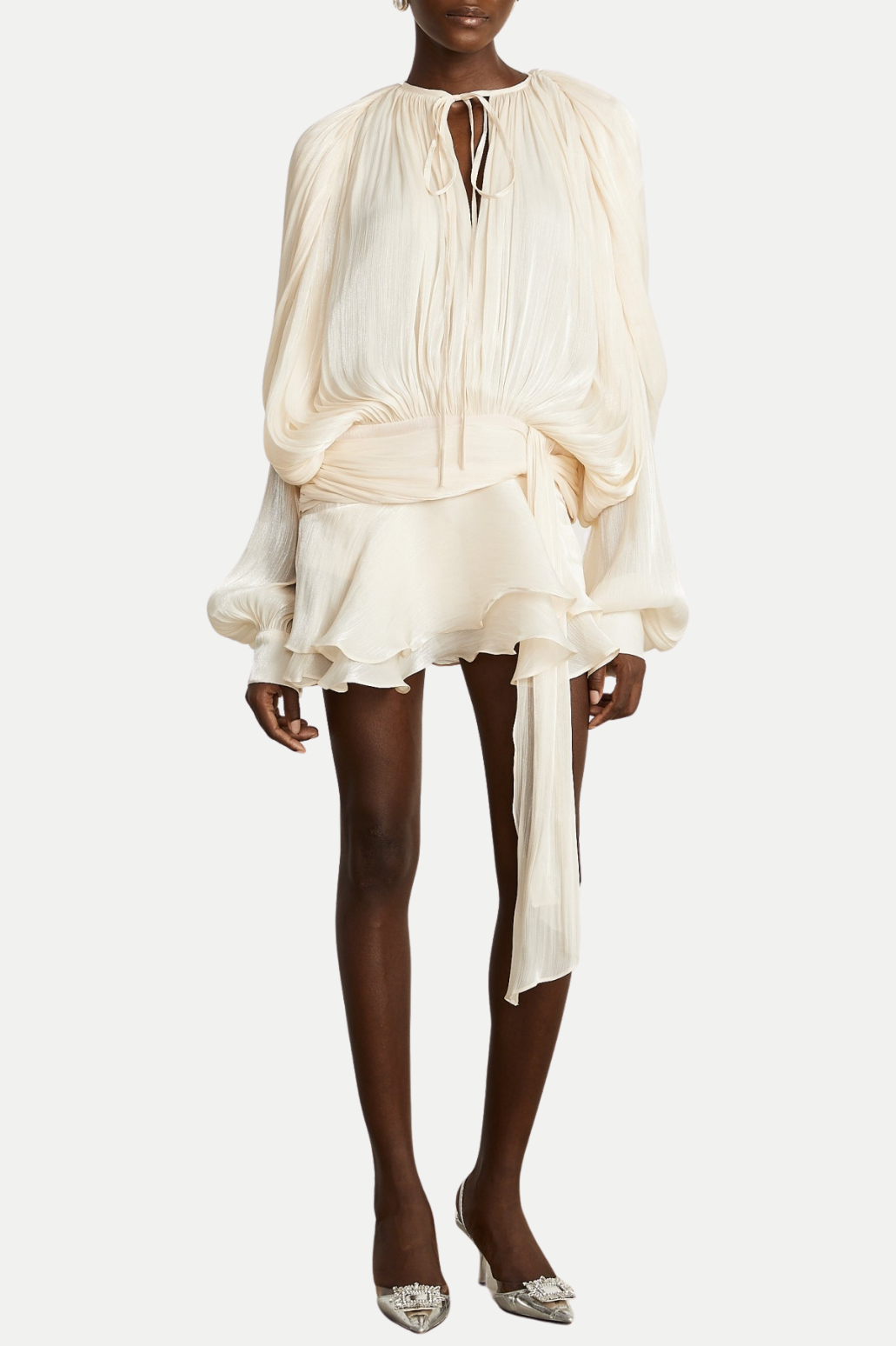 Anzay Pleated Ruffled Hem Mini Dress - Beige
