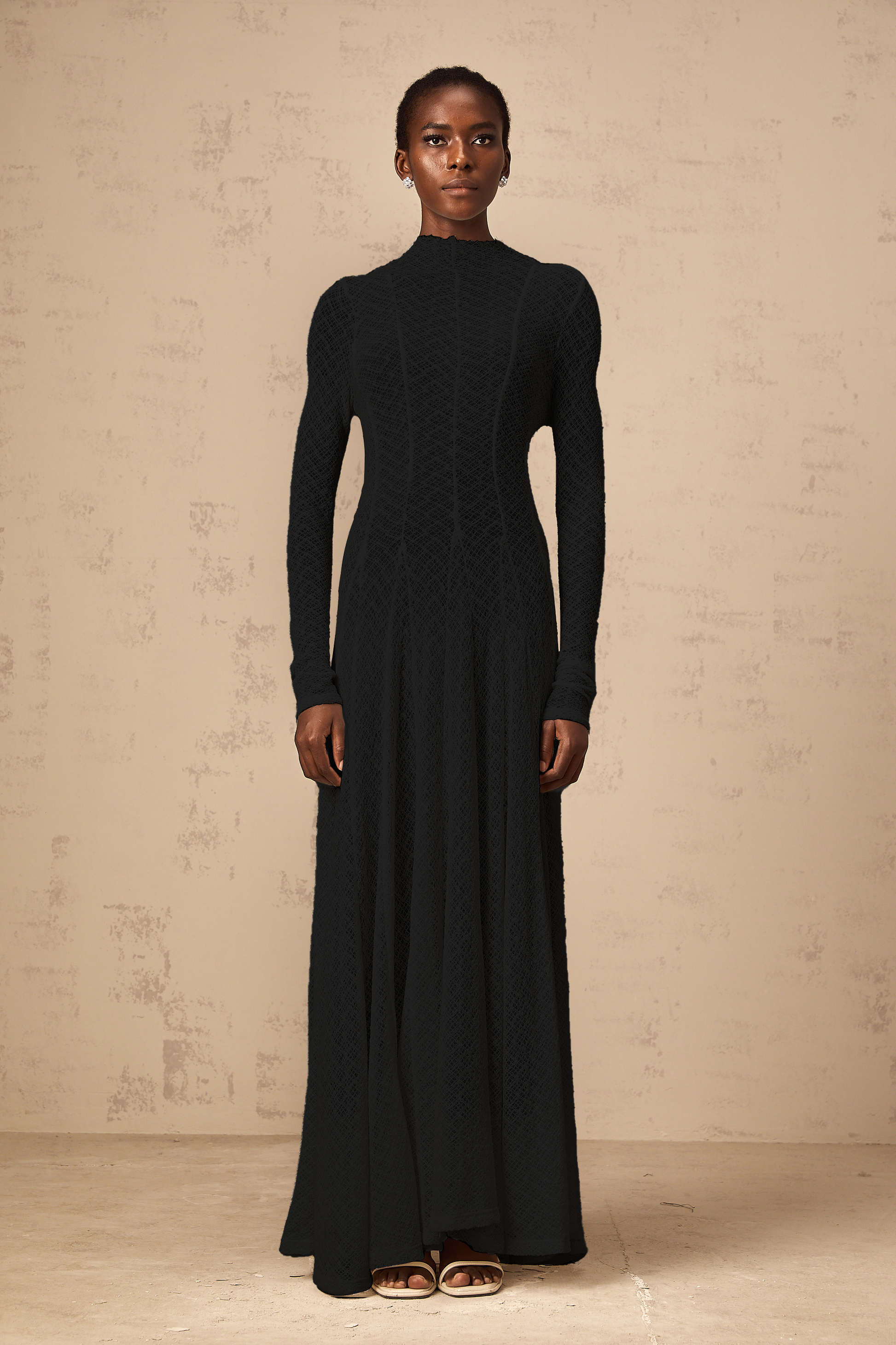 Athena wavy-pattern lace maxi dress in Black
