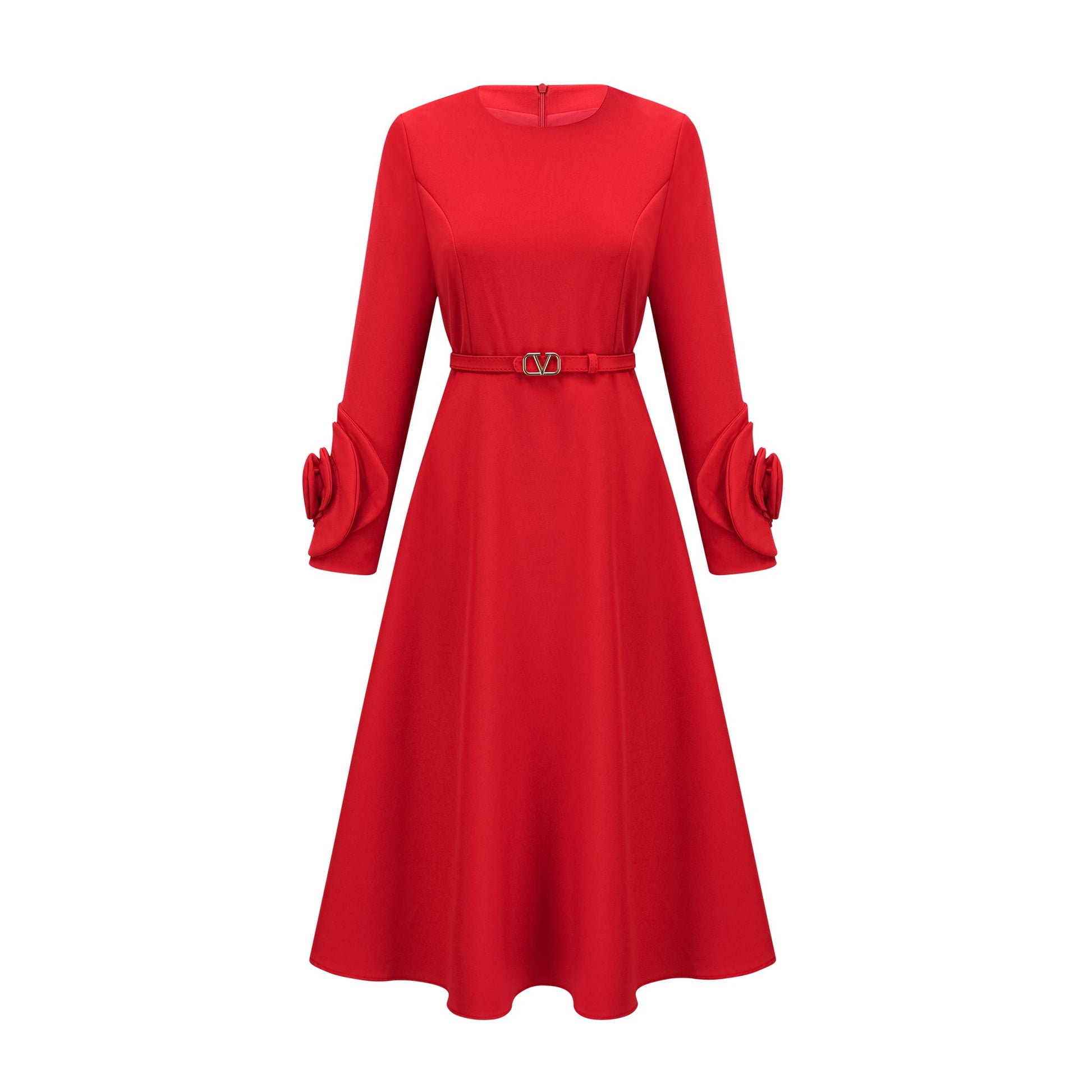 Aurelia red long-sleeve floral dress