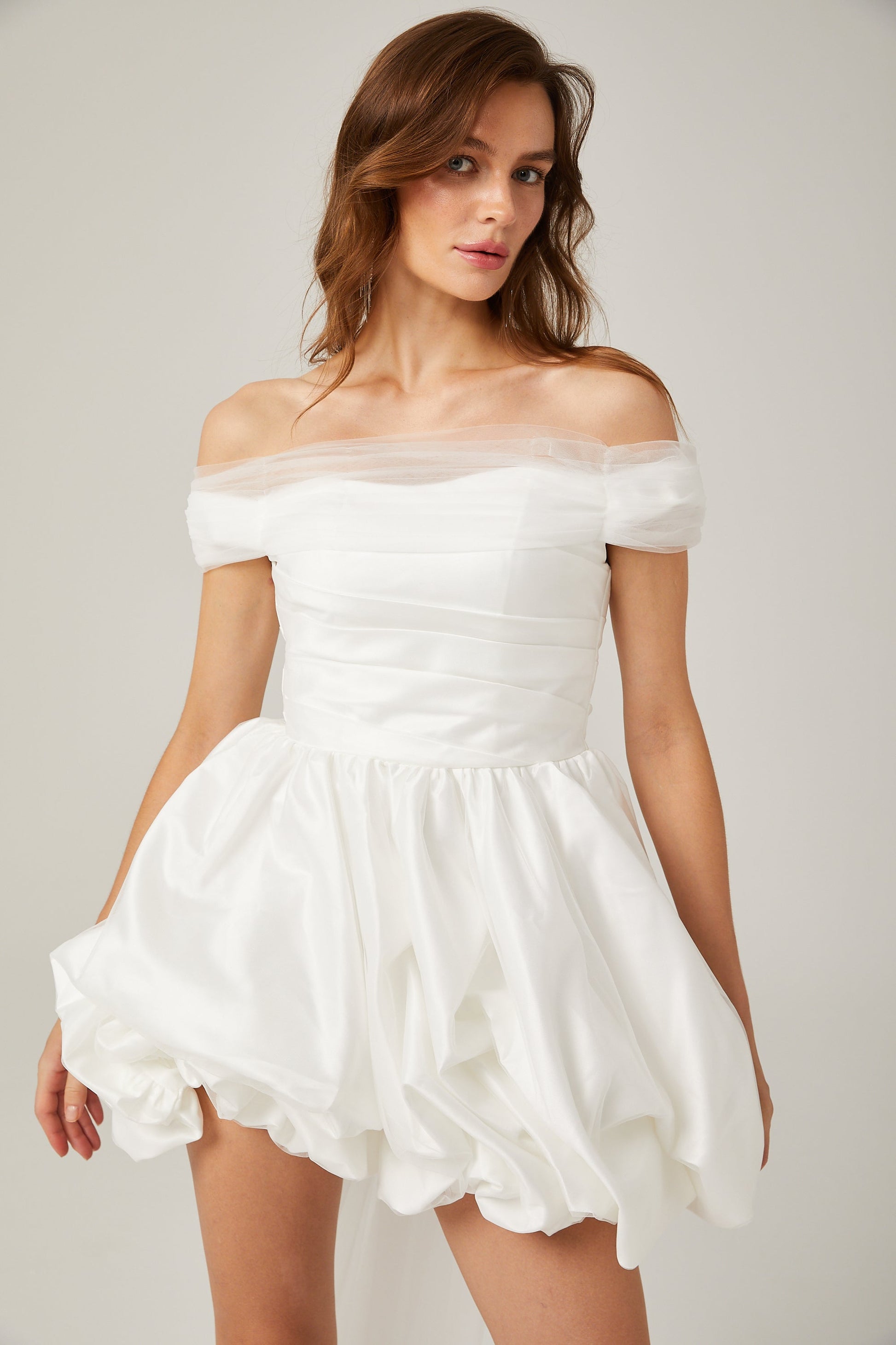 Aurore white off-shoulder bowknot mini dress