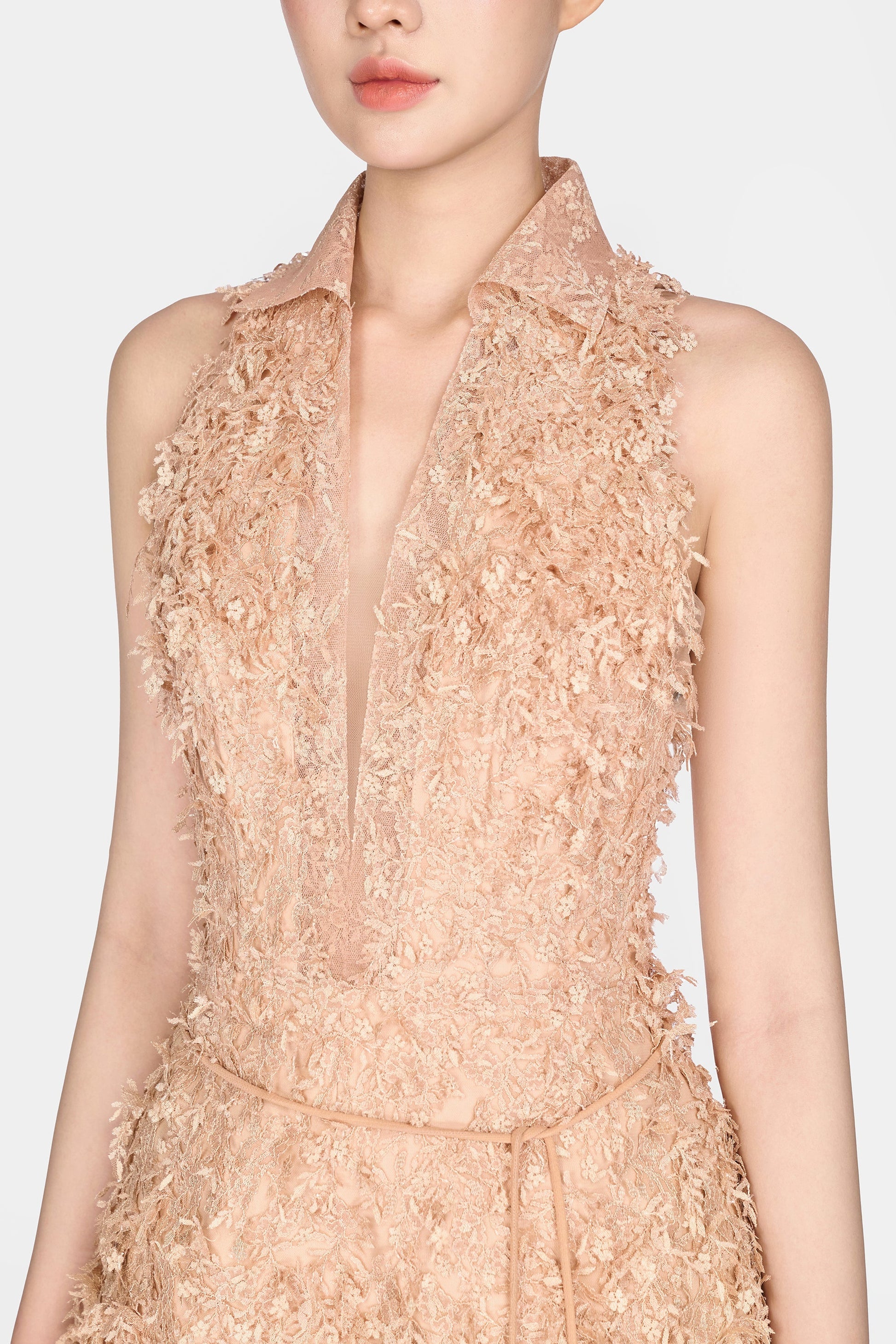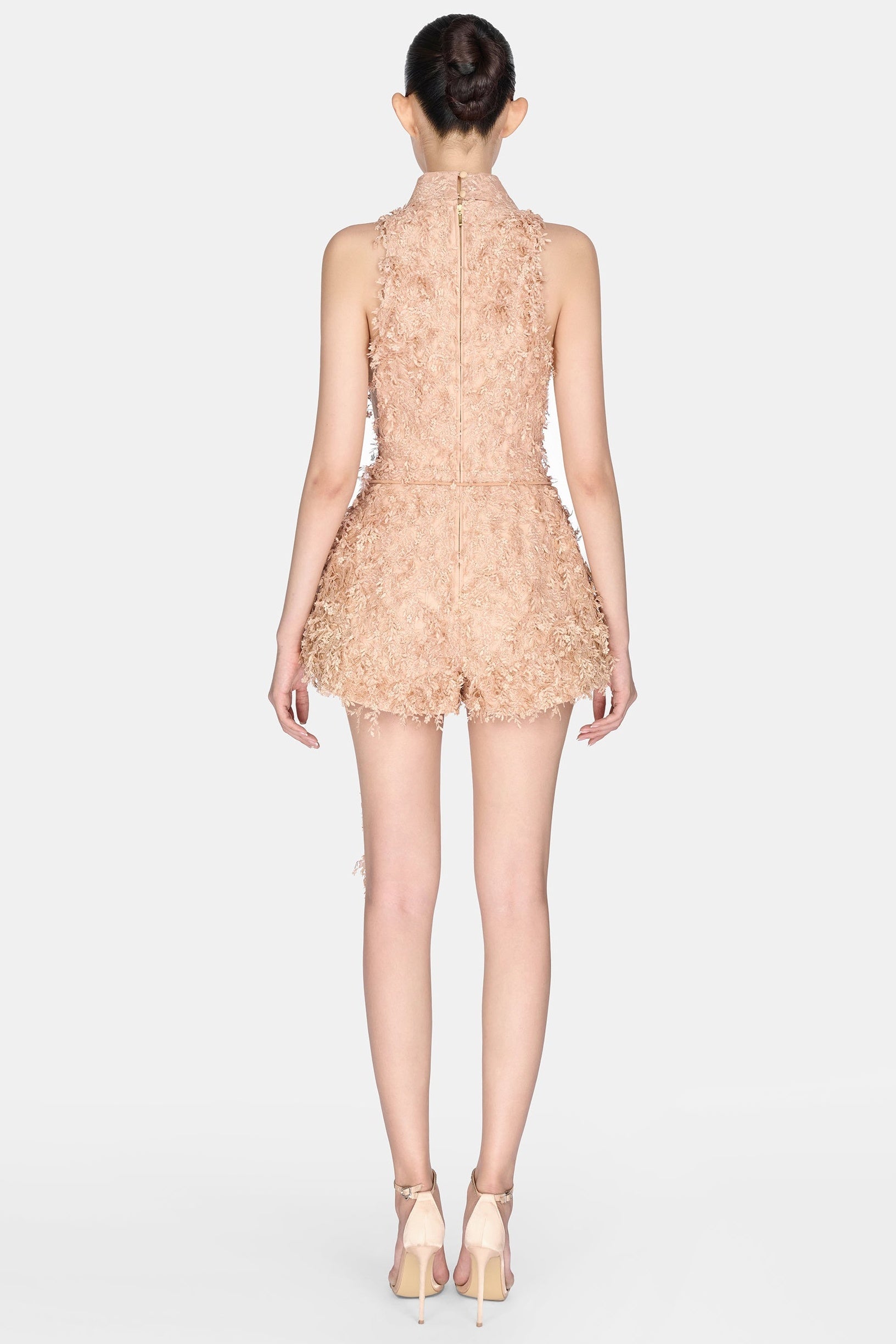 Indulge in luxury with our Barron Lace Jacquard Fringe Jumpsuit. Crafted with intricate lace and delicate fringe details, this jumpsuit exudes elegance and sophistication. Make a statement at any event and be the center of attention with this exclusive and timeless piece.